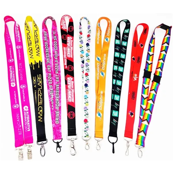 The polyester lanyards with lobster claw and breakaway, include a 2-sided step and repeat full color sublimation imprint. Perfect for turning heads at conventions, concerts, and tradeshows. Available in a wide variety of widths with your choice of attachment. Please be noted that the different zip code and shipment way, the pricing and lead-time are different, welcome to inquiry.