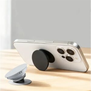 Crafted with an rubber air cushion layer and durable plastic frame, this holder uses pneumatic principles for flexible angle adjustments and stable support. Extends up to 0.8″, with a 3M adhesive base for secure attachment to phone backs. Ideal for hands-free using during meals, meetings, or home use. Colors: black, white, yellow, blue, red. Compact size about 1.57″*1.57″*0.28″. Combines portability, multi-angle versatility, and reliable grip for everyday scenarios.