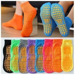 These socks are made of combed cotton and elastane. General thickness. Silicone anti slip material at the bottom of socks can prevent sliding on the smooth floor and provide more protection for your feet during activities. It offers maximum grip and unparalleled stability and flexibility.