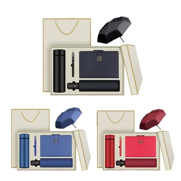Journal, pen, insulated tumbler and umbrella are included. The journal is made from soft faux leather. The tumbler is insulated stainless steel mug. You can choose different styles of notebook buckles. Let your clients relax with this exquisite gift set. Add your brand name, logo or graphics to make sure your company is always recognized. The price is based on boat shipment.