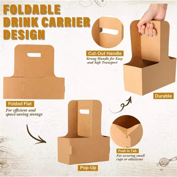 This dual-cup drink holder features a sturdy, comfortable handle for carrying multiple drinks easily and safely. No more worrying about spills or burns from hot beverages. It’s ideal for takeout or delivery, ensuring safe transport of drinks and food. You can customize them with their logos for promotional purposes, making them a great tool for showcasing and promoting restaurant, cafe, or takeout service brands.