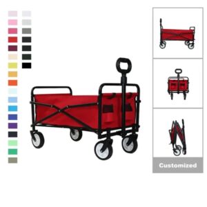 The Folding Garden Cart’s telescoping adjustable handle locks and extends allows effortless transport across multiple surfaces with a load as heavy as 130 lbs.This cart is excellent for garden, home, beach, camping, office, warehouse, garage, workshops, schools. And the foldable structure is perfect for easy storage.