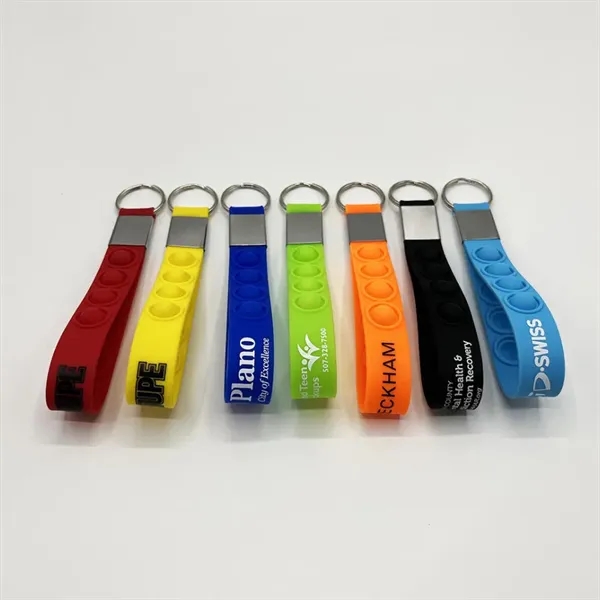 Made of silicone. Press bubbles down to relieve stress. encourages focus and self-soothing for users with anxiety, attention disorders and more. Fun stress reliever. Make your own pattern by pressing on different bubbles or just press for fun. Perfect For reducing stress and boredom. And it is also use for keychain as a gift, yuor logo can be customized.