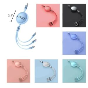 This retractable 3-in-1 data cable is a game-changer for charging multiple devices simultaneously. With 5 adjustable length gears (requiring both ends to be pulled), it extends up to 47 inches. The 3 charging ports are a max 6A Type-C port, a 2.4A port, and a 2A USB port. Perfect for phones, tablets, and more, it supports different devices at once. And it can be customized with your logo, making it a great promotional item. Durable and convenient, it’s a must-have for daily use and on-the-go charging needs.