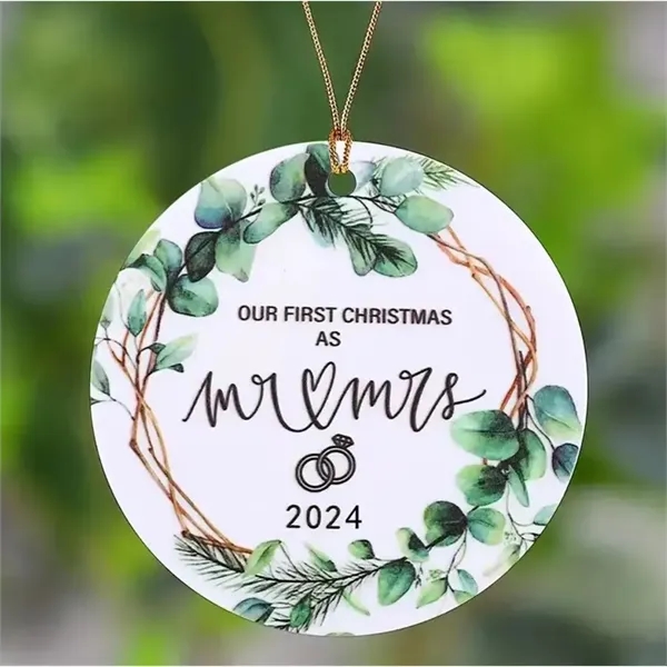 Crafted from premium white ceramic, this 3″ round ornament comes with a luxurious gold hanging ribbon, ready to grace your tree with elegance. We provide you two different price, can choose it base on your in hand time.